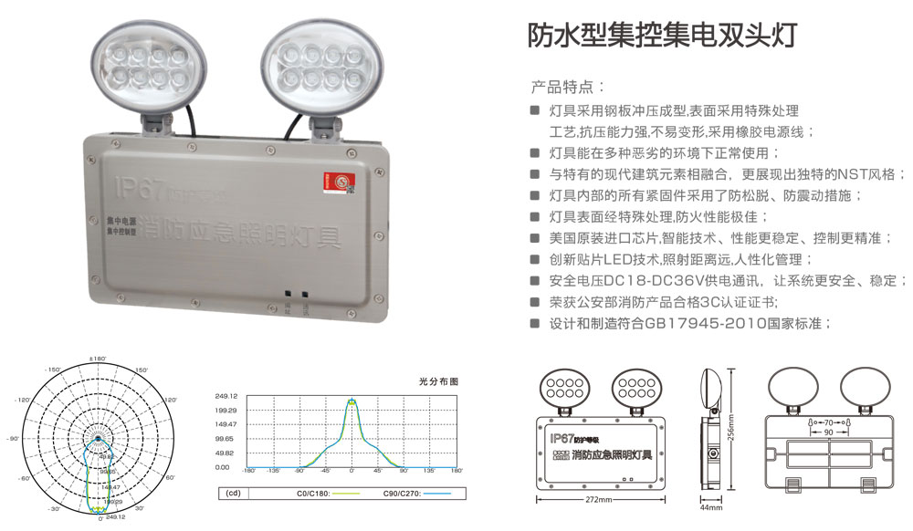 防水型集控集电双头灯