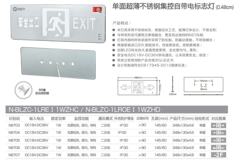 单面超薄不锈钢集控自带电标志灯(0.48cm)