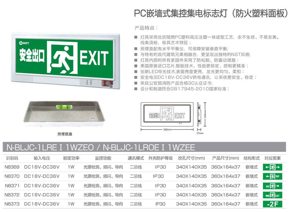 PC嵌墙式集控集电标志灯(防火塑料面板)