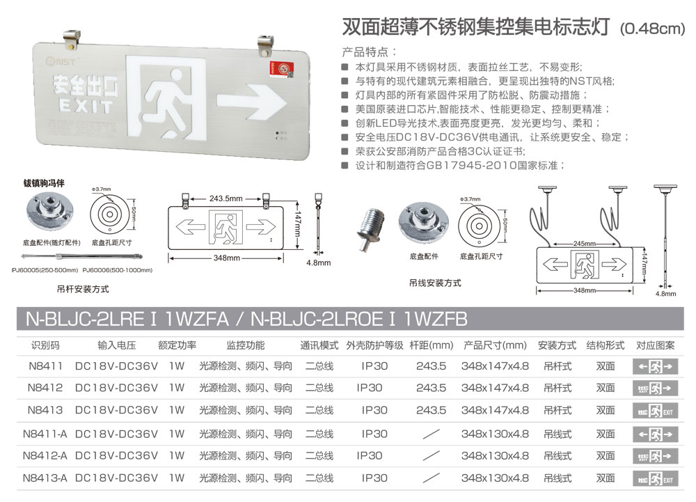 双面超薄不锈钢集控集电标志灯(0.48cm)