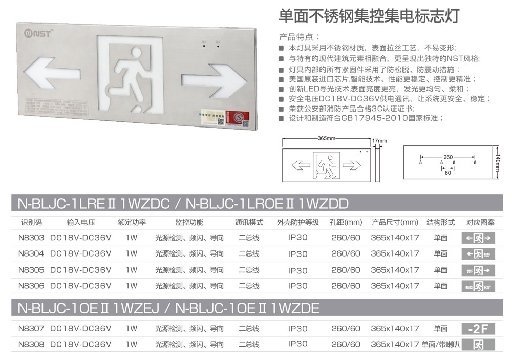 单面不锈钢集控集电标志灯