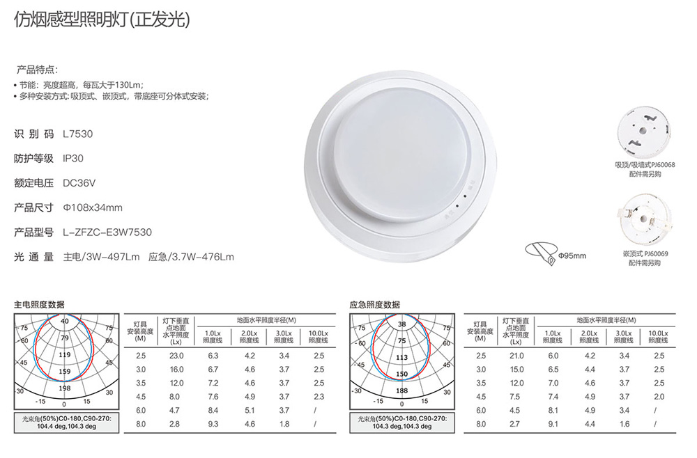 仿烟感型照明灯(正发光)