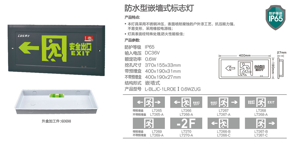 防水型嵌墙式标志灯