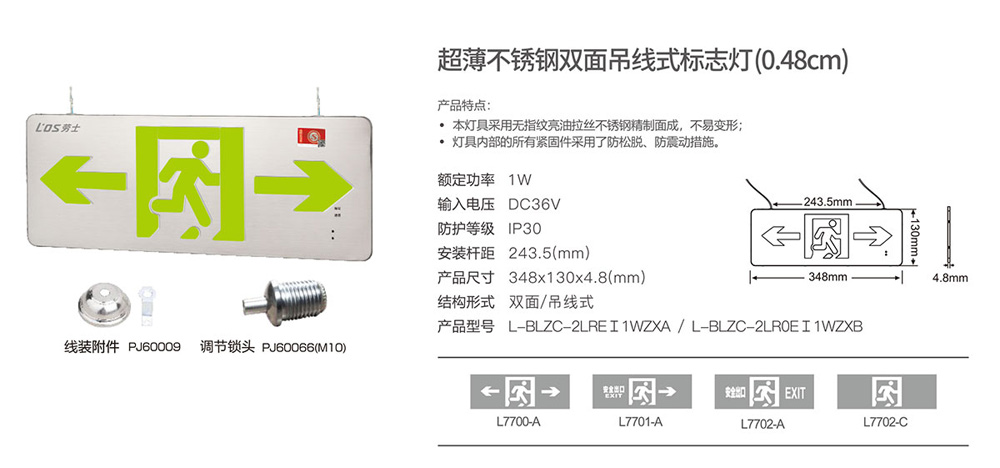 超薄不锈钢双面吊线式标志灯(0.48cm)